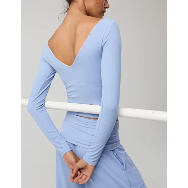 OFFLINE By Aerie Real Me XTRA Rib Open V-Neck T-Shirt – Monaco Blue