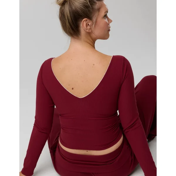 OFFLINE By Aerie Real Me XTRA Rib Open V-Neck T-Shirt – Deep Cherry