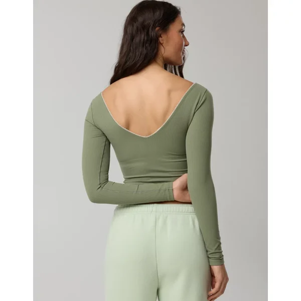 OFFLINE By Aerie Real Me XTRA Rib Open V-Neck T-Shirt – Olive Fun