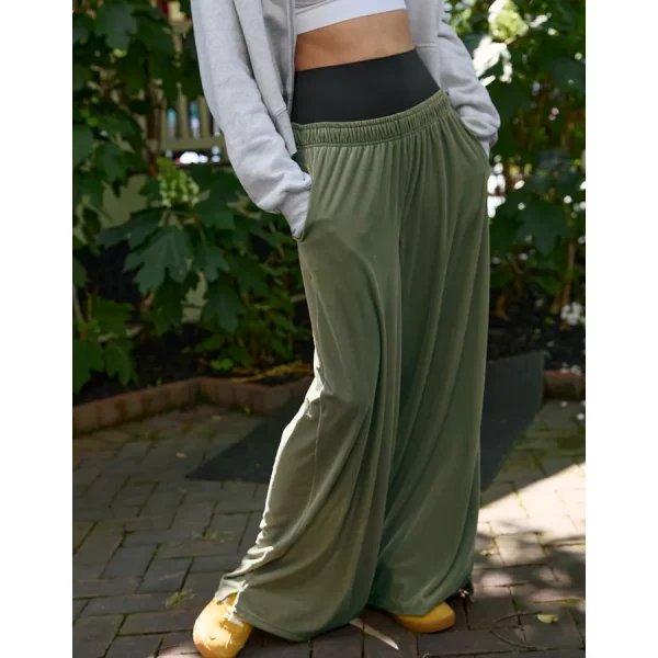 OFFLINE By Aerie Velour Rib Super Wide Leg Pant – Olive Fun