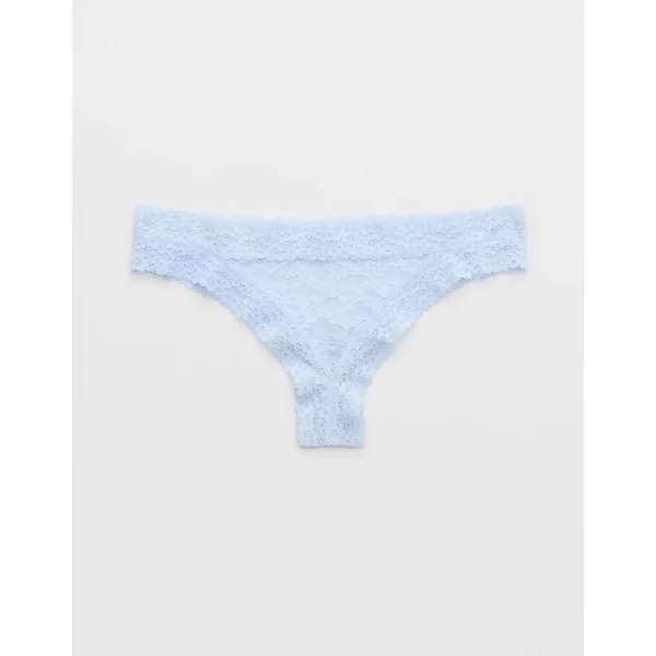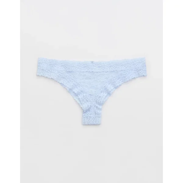 Show Off Vintage Lace Trim Thong Underwear – Eyelet Blue