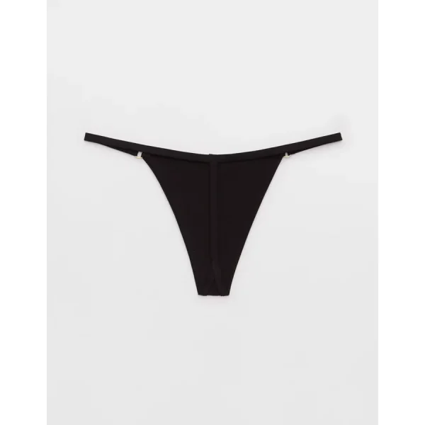 Superchill Vintage Lace Cotton Thong Underwear – True Black