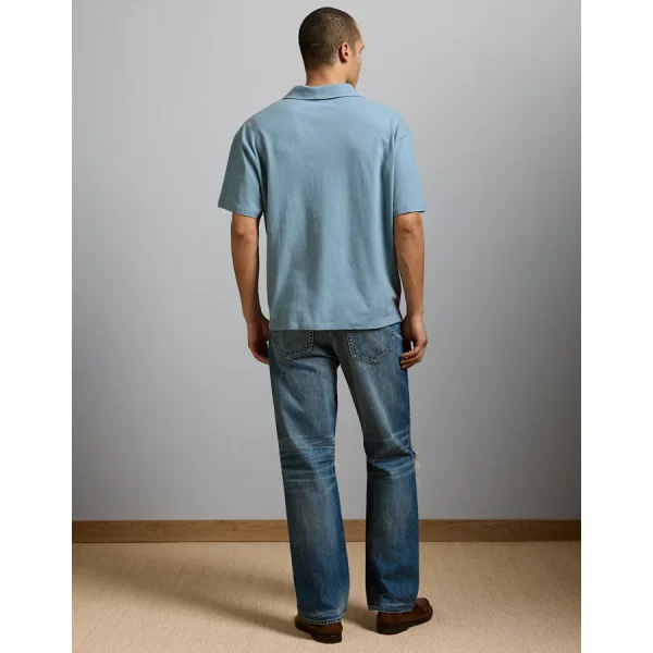 AE77 Premium Linen-Blend Polo Shirt – Light Blue