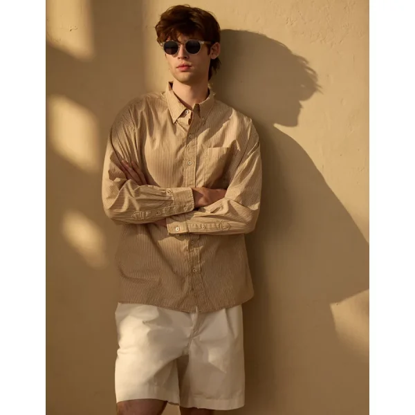 AE77 Premium Relaxed Striped Poplin Button-Up Shirt – Brown