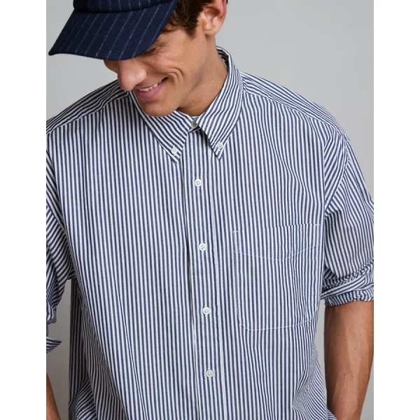AE77 Premium Relaxed Striped Poplin Button-Up Shirt – Blue