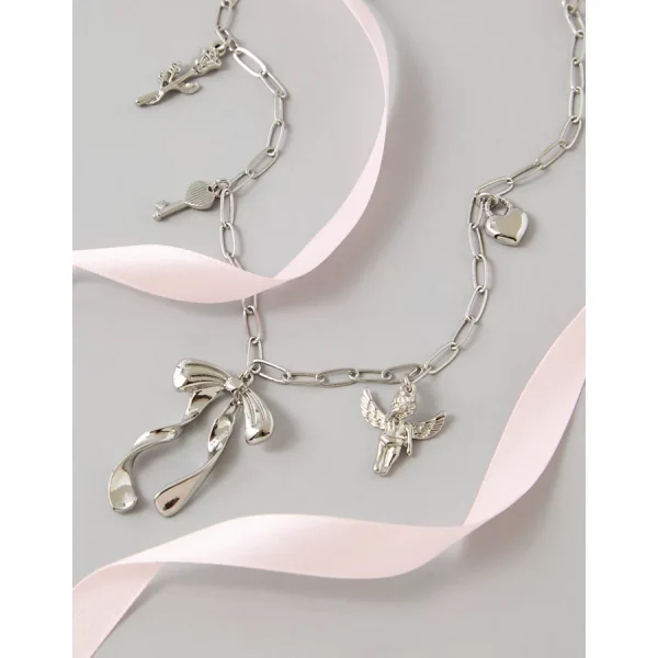 Adjustable pearl chainChunky charms 40% Acrylic, 30% Zinc, 20% Glass, 5% Brass, 4% Steel, 1% OtherImported
