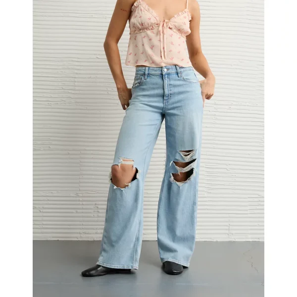 AE Dreamy Drapey Stretch Ripped Super High-Waisted Baggy Wide-Leg Jean – Light Destroy Wash