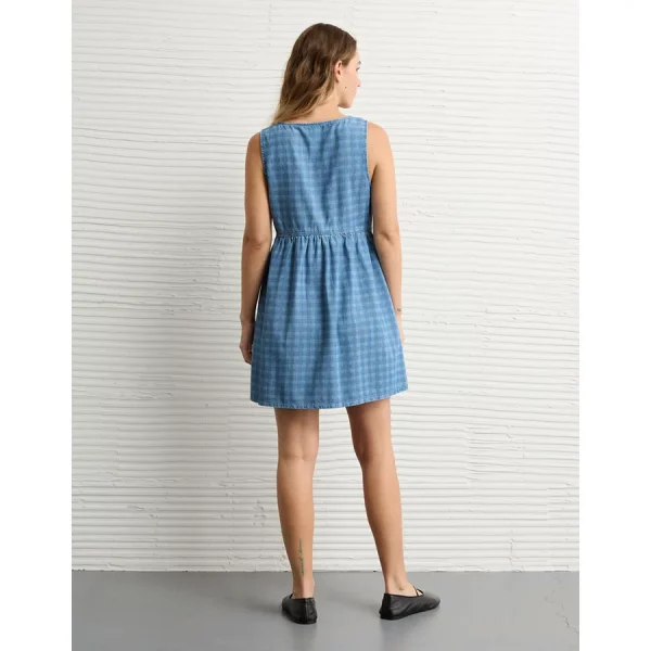 AE V-Neck Denim Striped Mini Shift Dress – Medium Wash