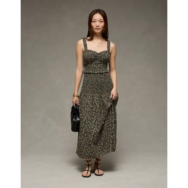AE Catie Corset Smocked Floral Midi Dress – Floral