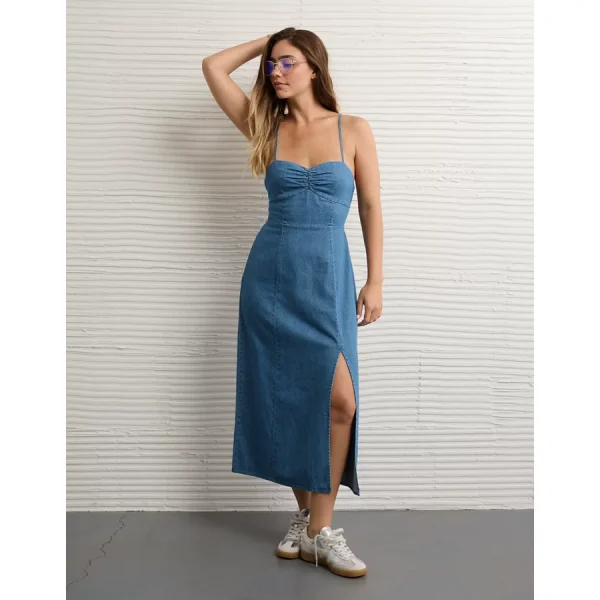 AE Catie Corset Column Midi Dress – Dark Wash