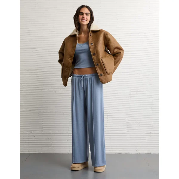 AE Luxe Plush Long-Sleeve & Pant PJ Set – Cognac