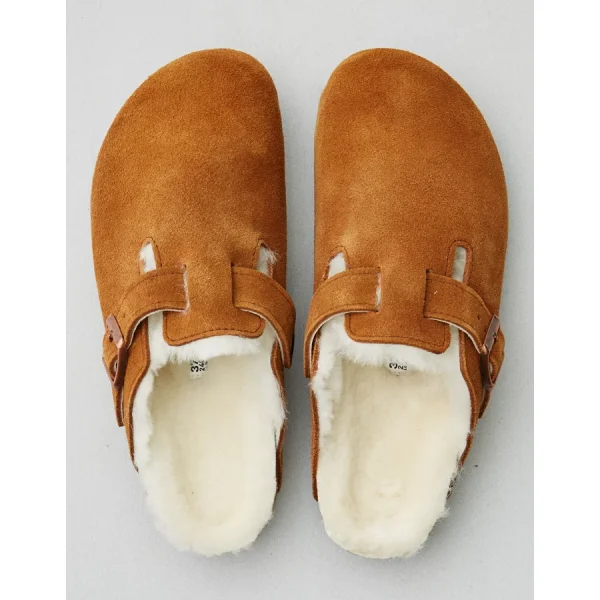 Slip-on convenienceSuede leather upperShearling liningCork footbedRubber outsoleNot Eligible For Promotions | Only Ships Within The USA Suede upper, Rubber outsoleImported