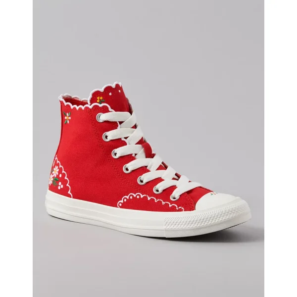 Converse Chuck Taylor All Star Embroidered Flowers High-Top Sneaker – Red