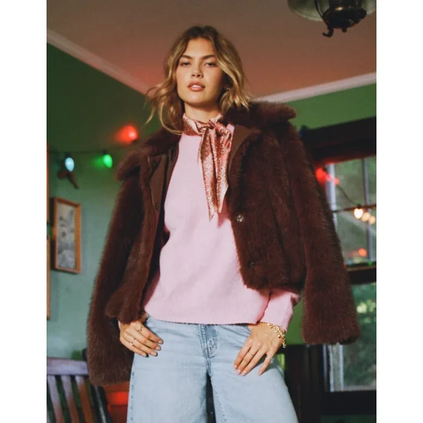 Peacoat styleFaux fur fabricationOversized collarLong sleeves 100% Recycled PolyesterSpot cleanImported Classic fit & length