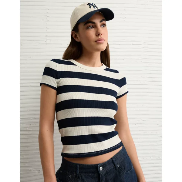 AE x The Summer I Turned Pretty Graphic Hey Baby Tee – Retro Indigo Stripe