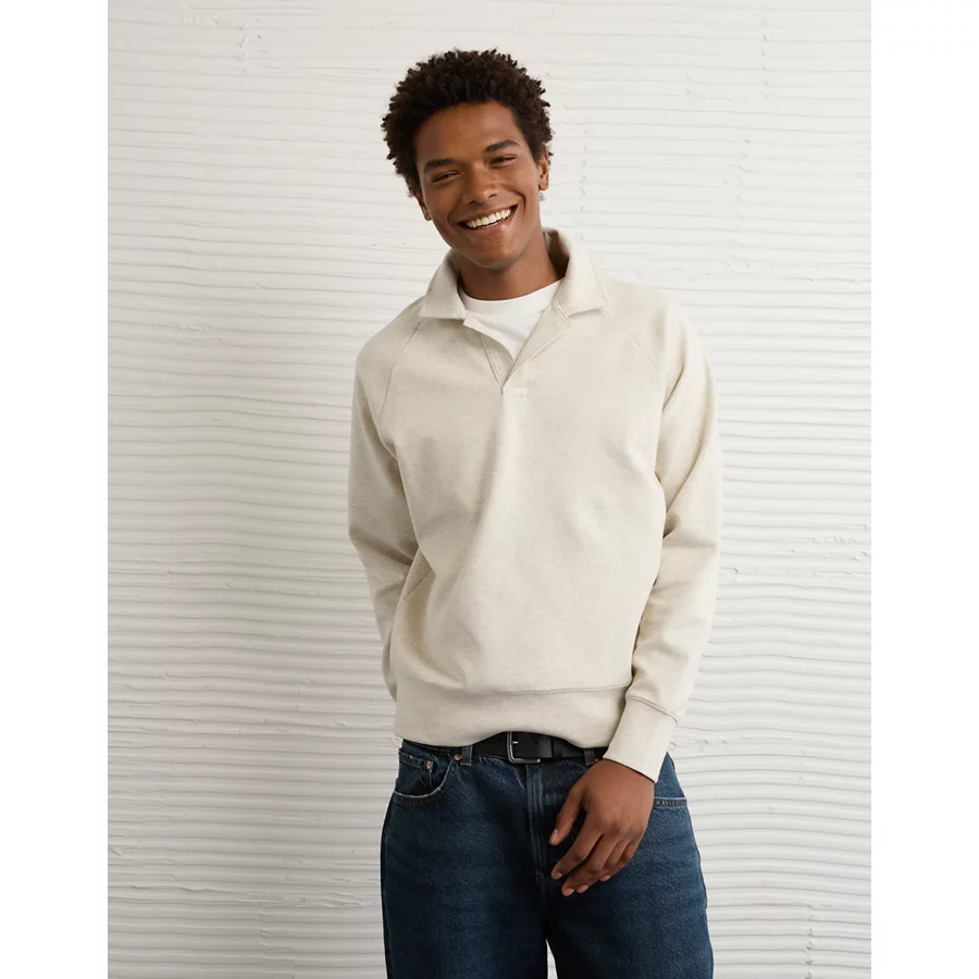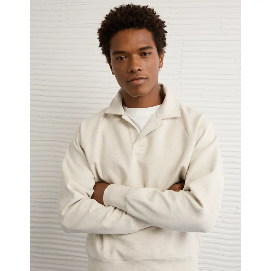 AE 24/7 Long-Sleeve Rugby Polo Sweatshirt – Oatmeal Heather