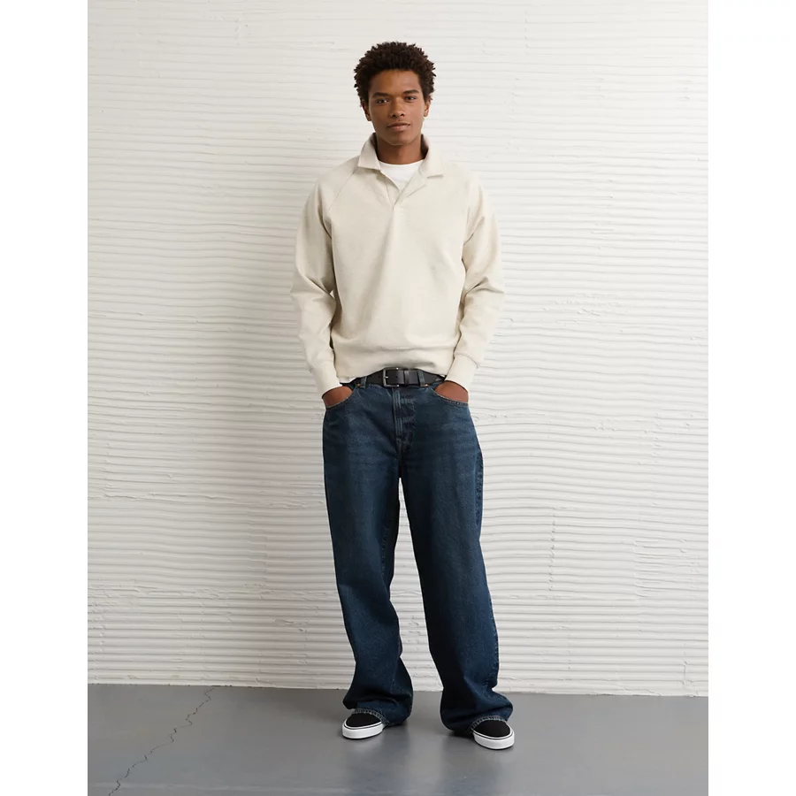 AE 24/7 Long-Sleeve Rugby Polo Sweatshirt - Raw White
