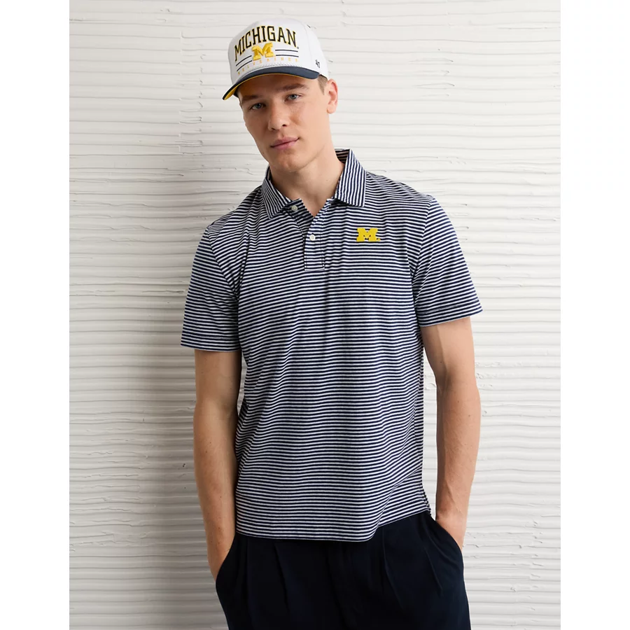 AE 24/7 Michigan Wolverines Graphic Club Polo Shirt – Ice Blue