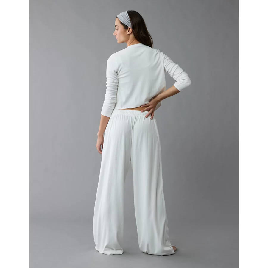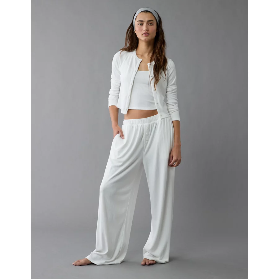 AE 3-Piece Pointelle Plush Cardigan Pajama Set – White