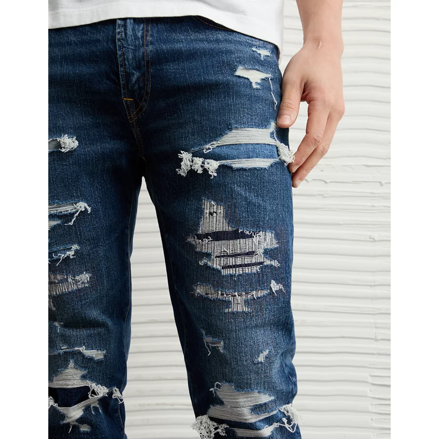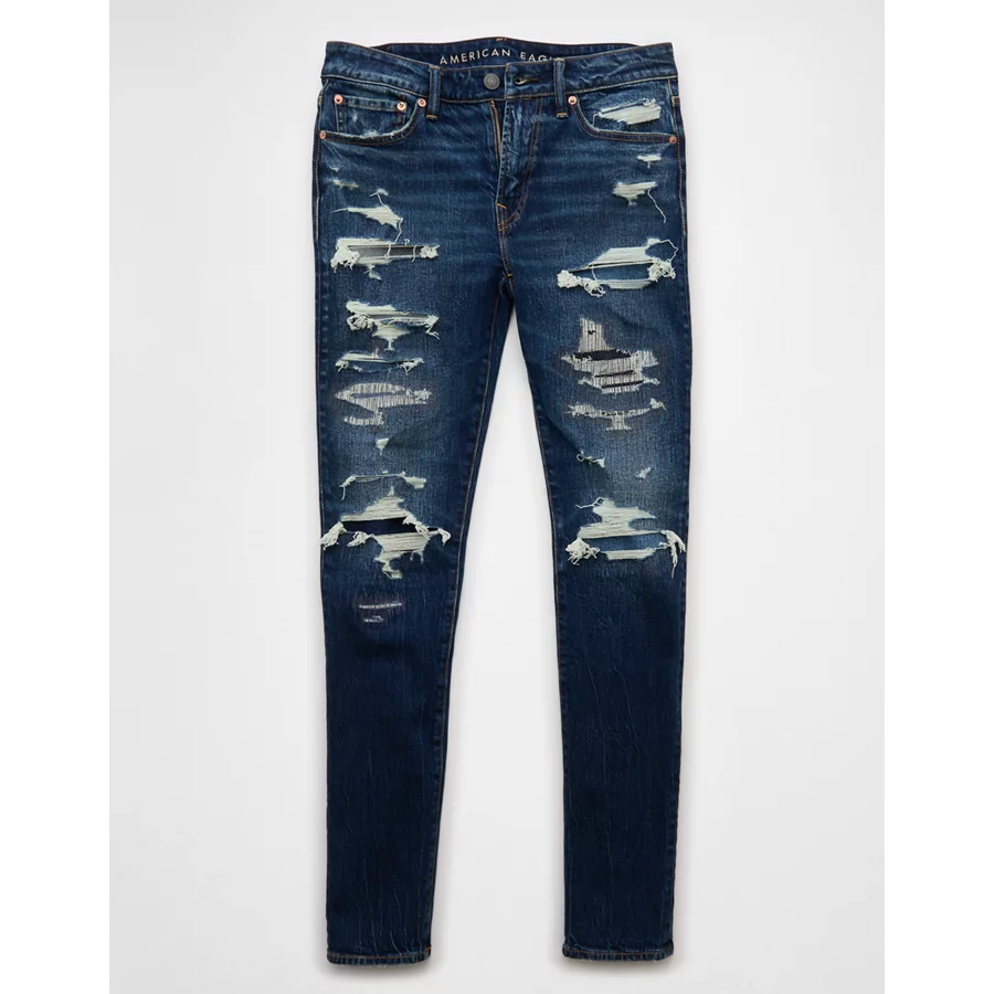 AE AirFlex+ Patched Skinny Jean – Indigo Shadow Destroy
