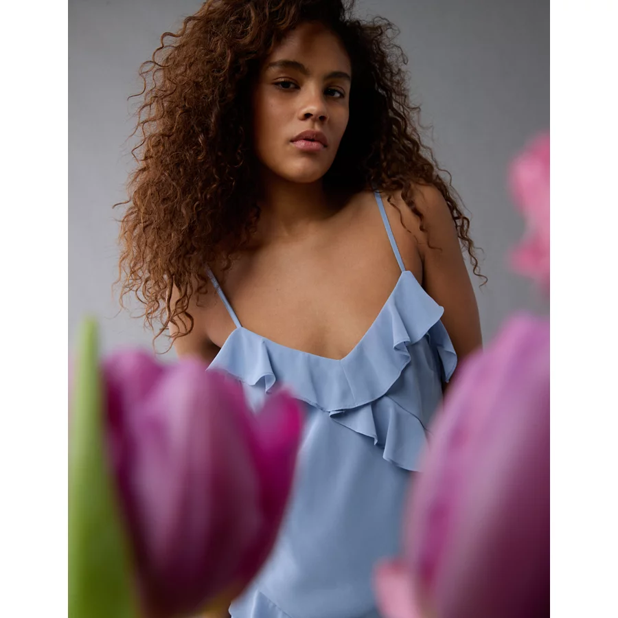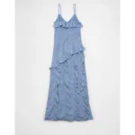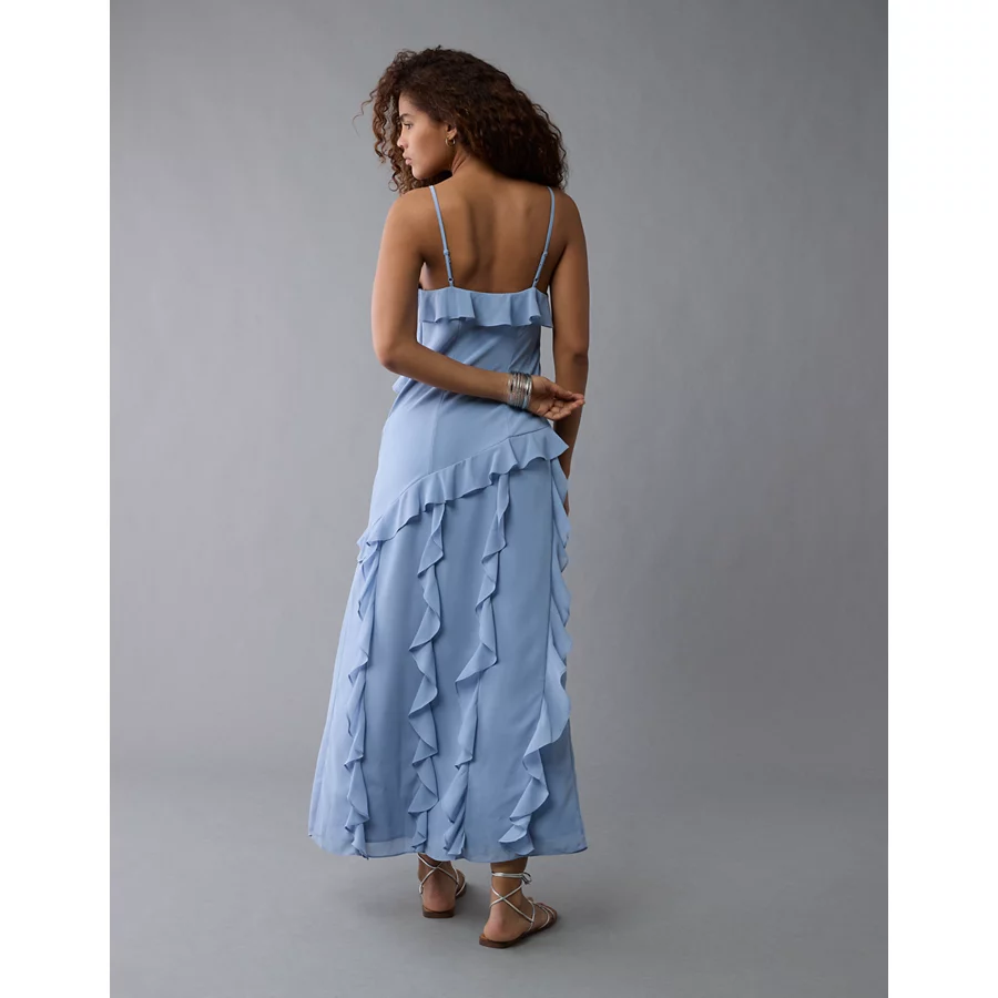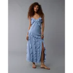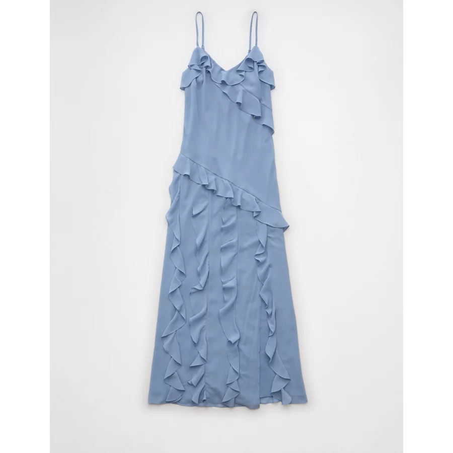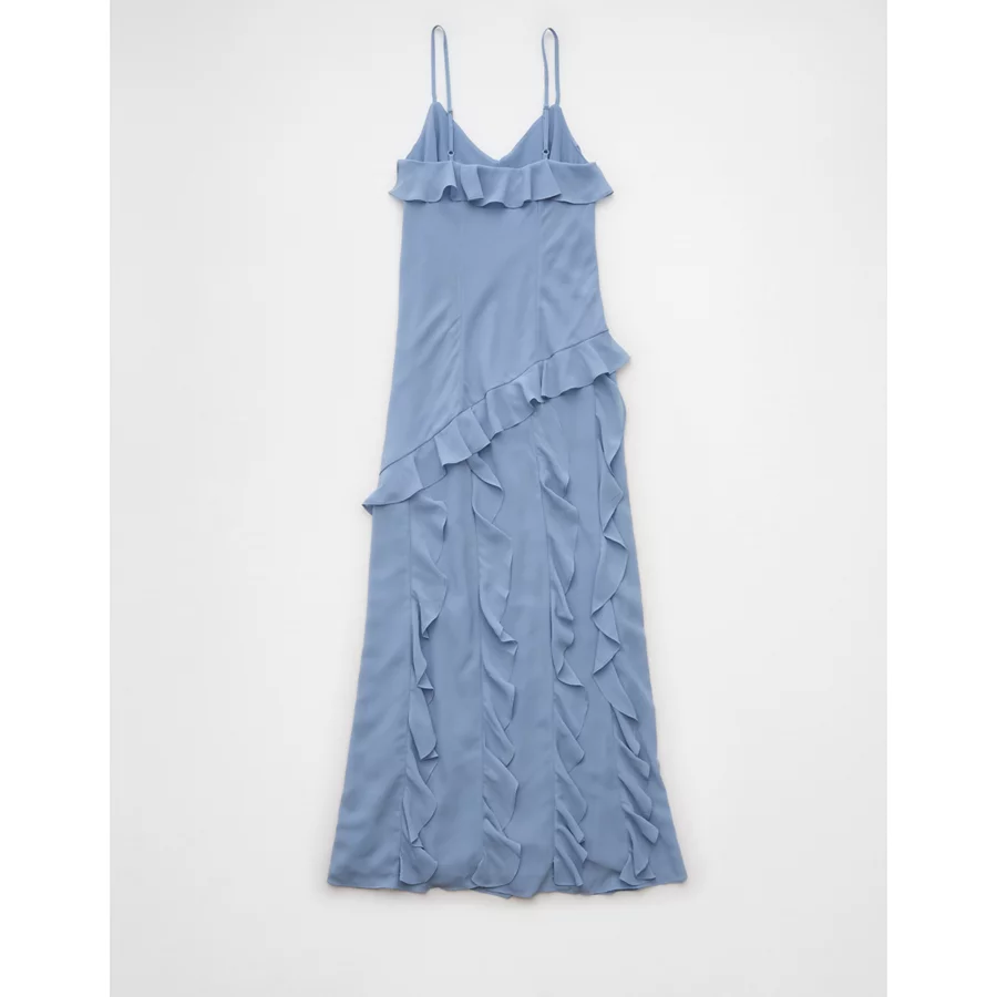 AE Asymmetrical Ruffle Maxi Slip Dress – Blue