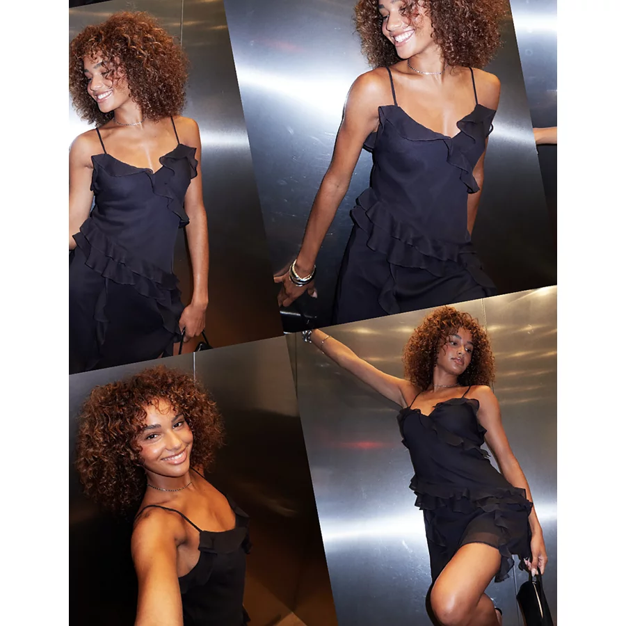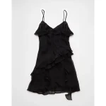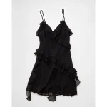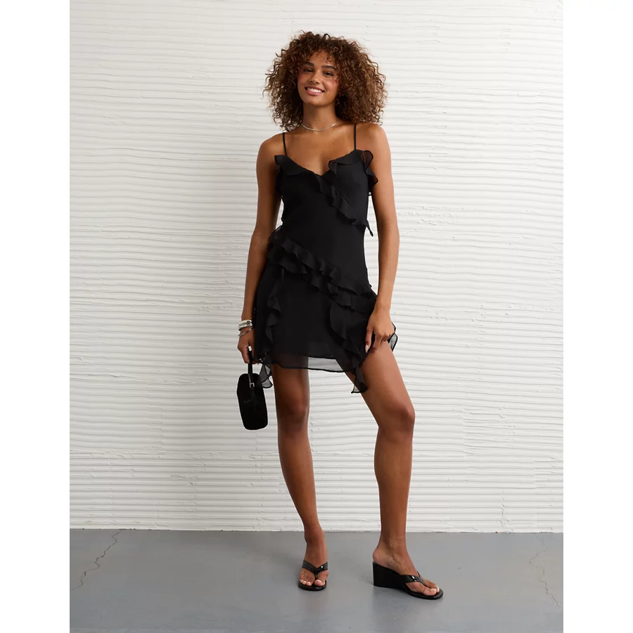 AE Asymmetrical Ruffle Mini Dress – Black