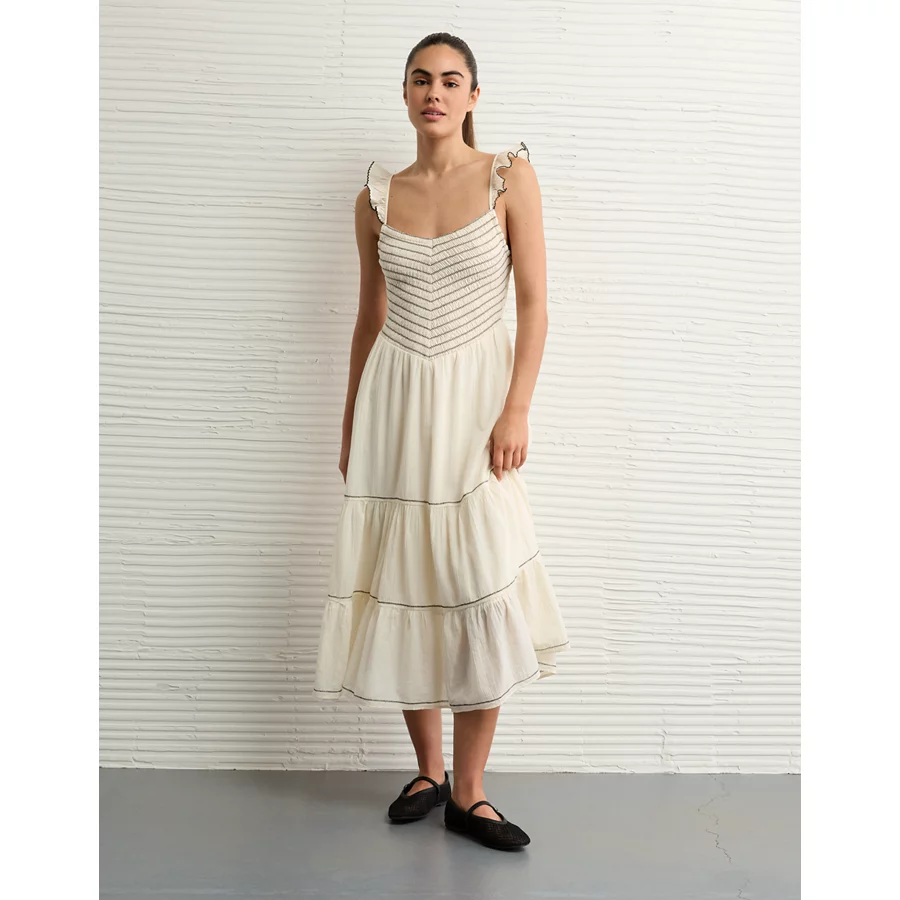 AE Bella Flutter Sleeve Midi Dress – Cream
