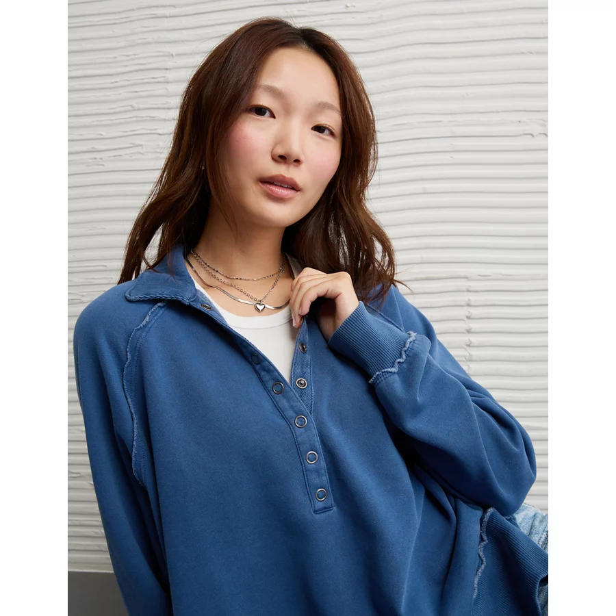 AE Big Hug Henley Sweatshirt – Navy