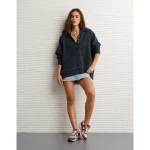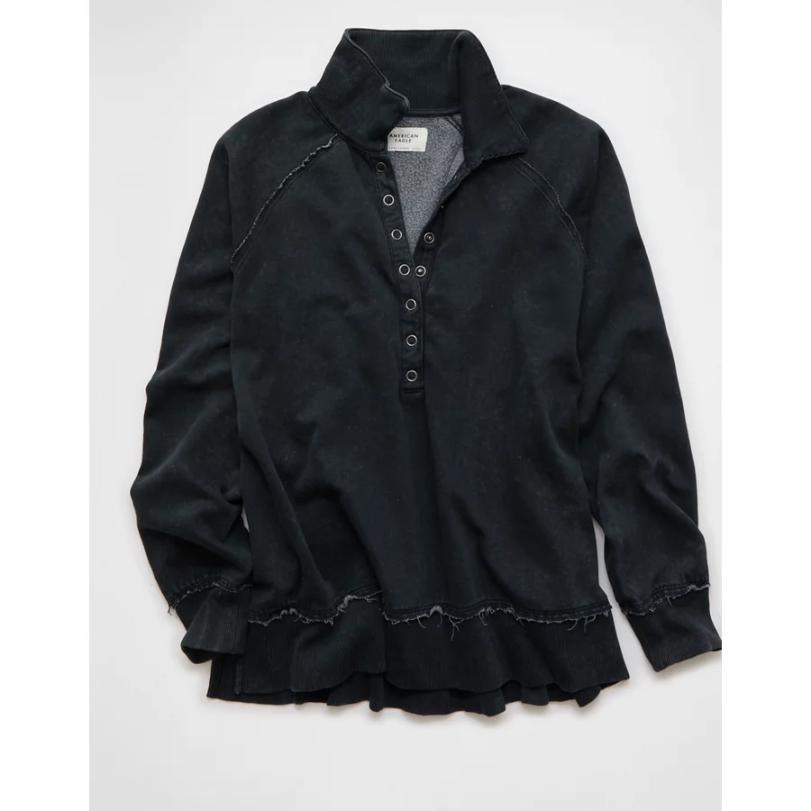 AE Big Hug Henley Sweatshirt – True Black