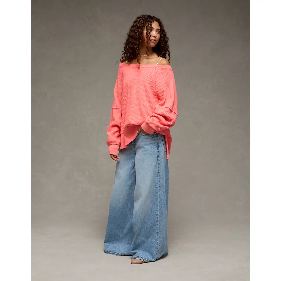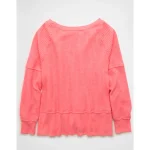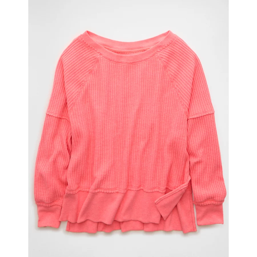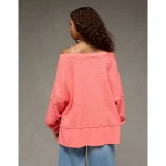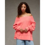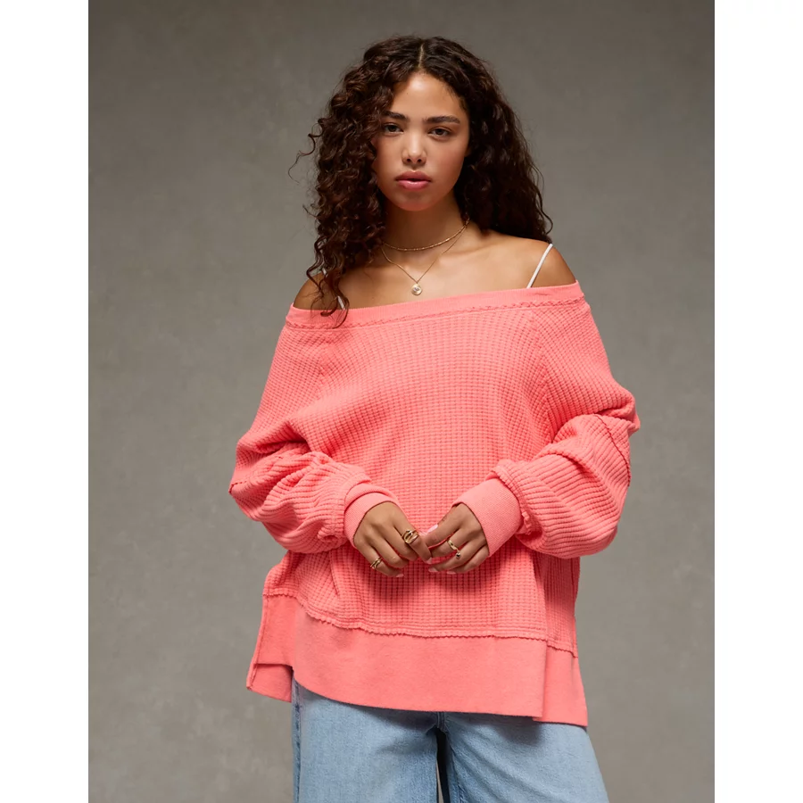 AE Big Hug Off-The-Shoulder Waffle Sweatshirt – Bright Pink
