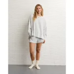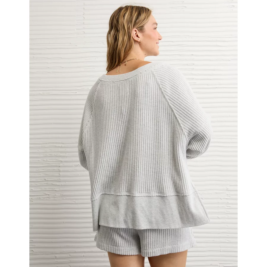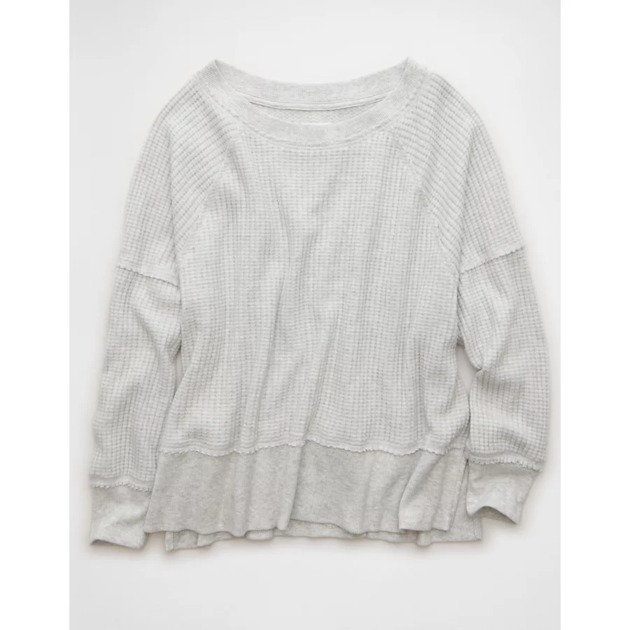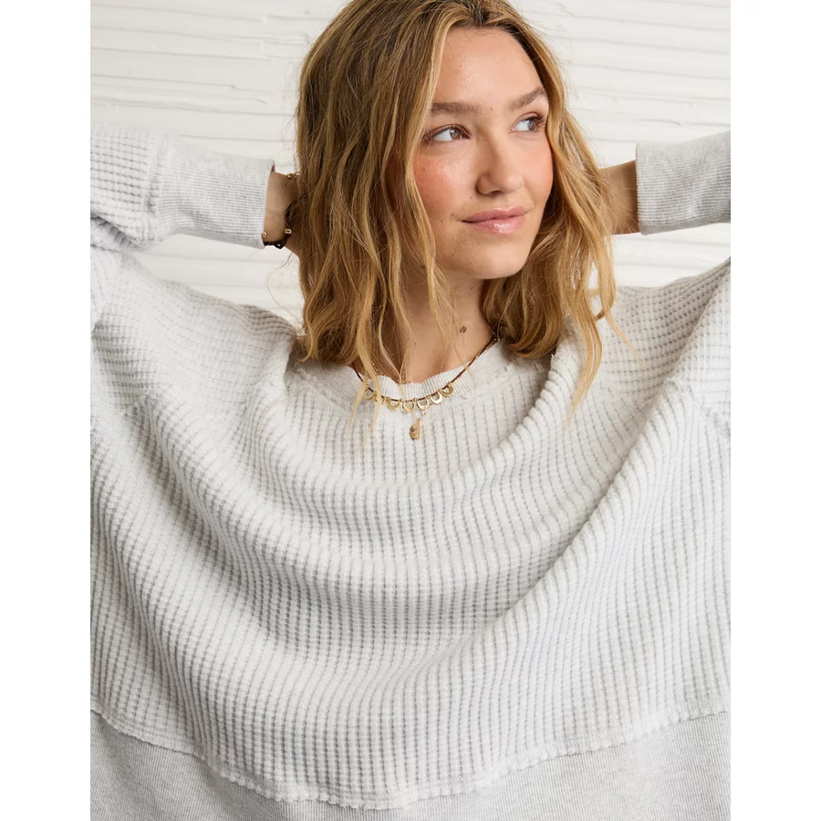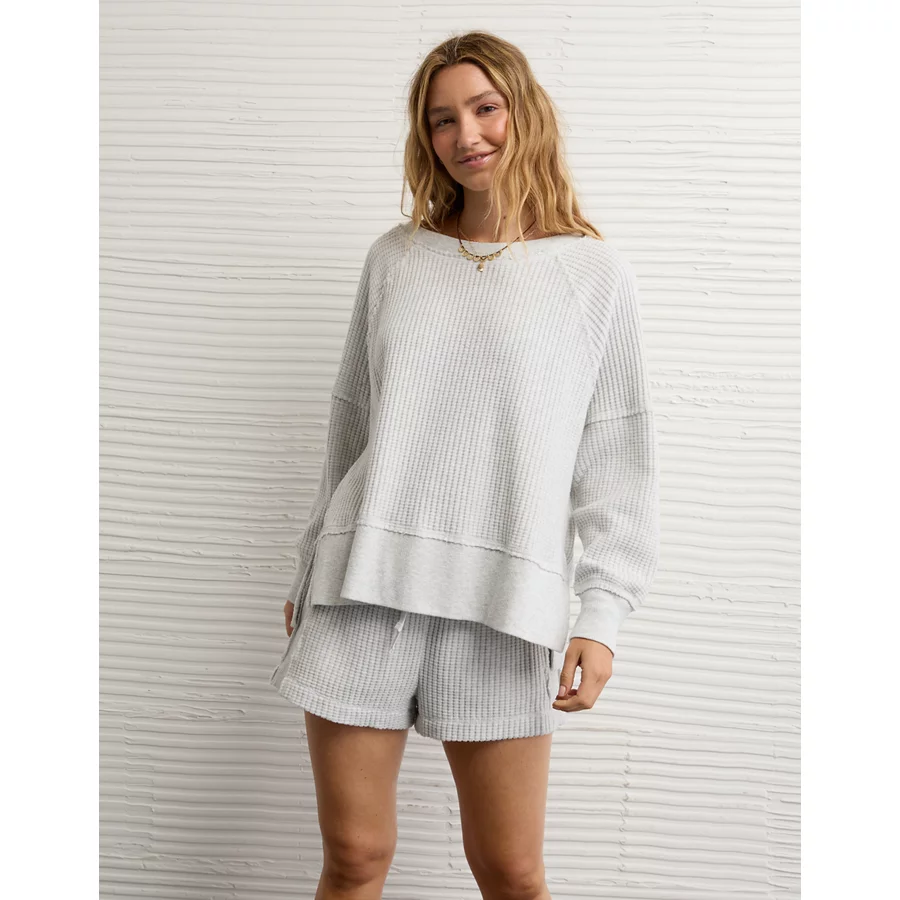 AE Big Hug Off-The-Shoulder Waffle Sweatshirt – Light Heather Gray