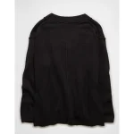AE Big Hug Off-The-Shoulder Waffle Sweatshirt - Chocolate