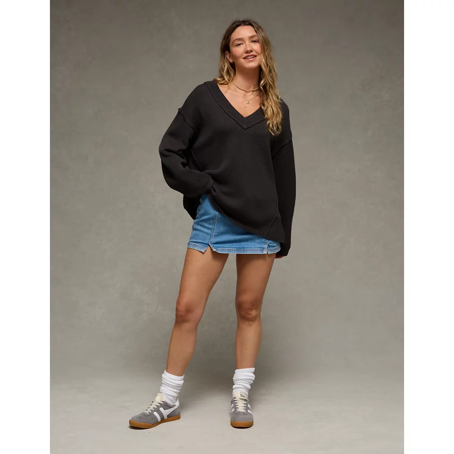 AE 11″ Dreamy Drape Stretch High-Waisted Jort – Light Tinted Wash