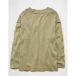 AE Big Hug V-Neck Waffle Sweatshirt - Oatmeal Heather