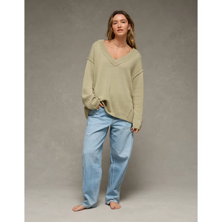 AE Big Hug V-Neck Sweater – Green