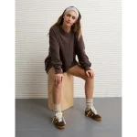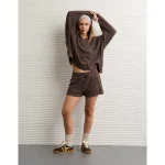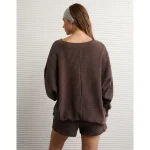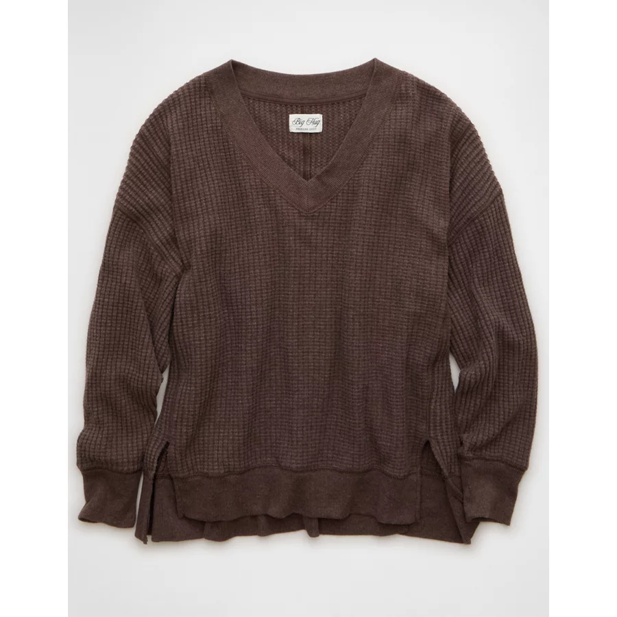 AE Big Hug V-Neck Waffle Sweatshirt – Chocolate