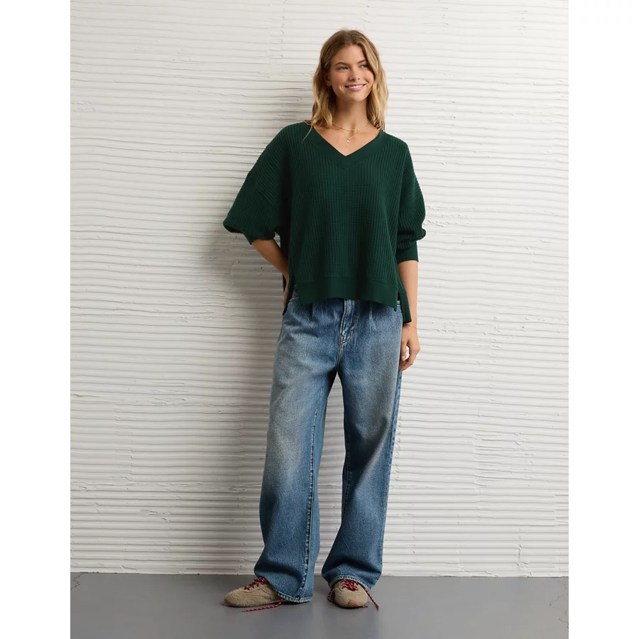 AE Big Hug V-Neck Waffle Sweatshirt – Deep Forest