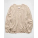 AE Big Hug V-Neck Waffle Sweatshirt – Oatmeal Heather