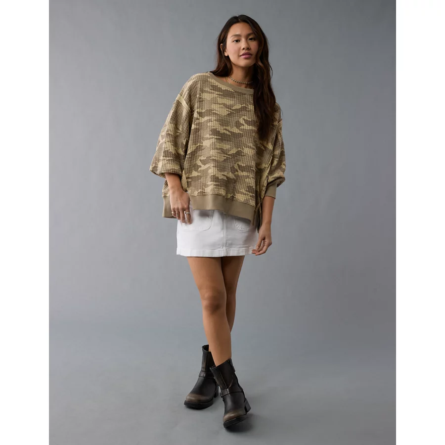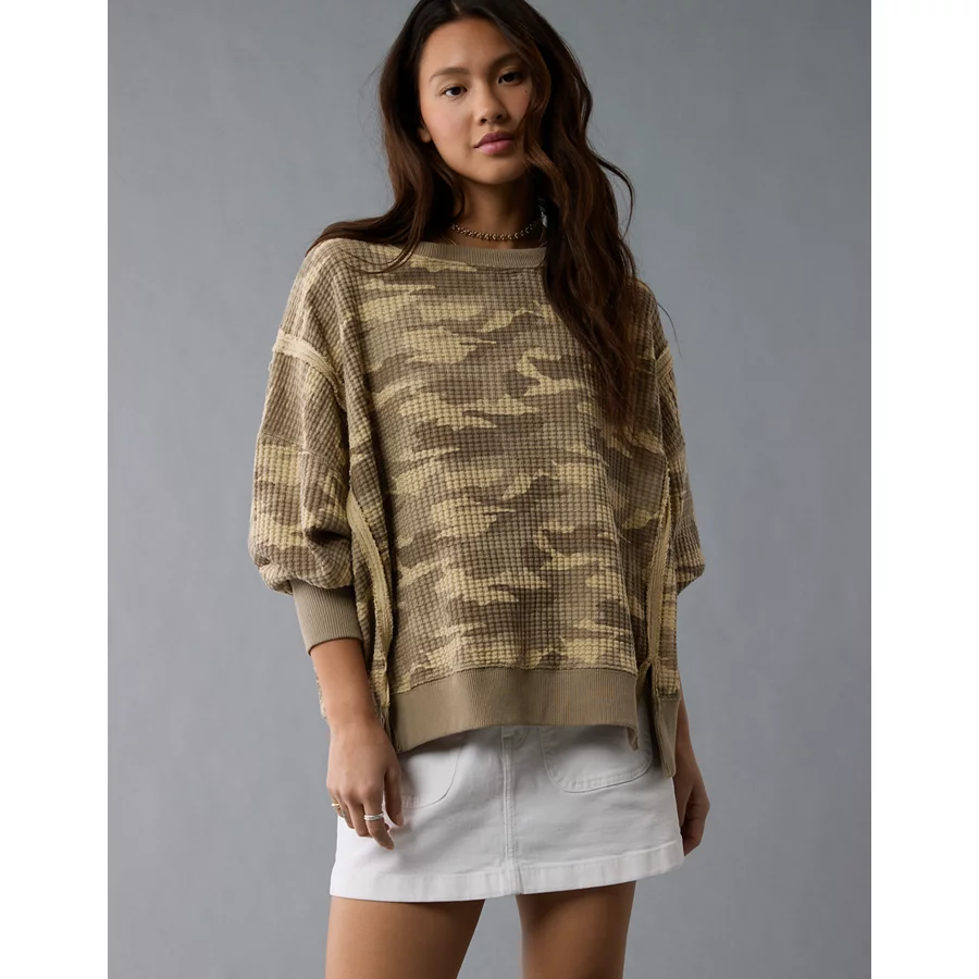 AE Big Hug Waffle Sweatshirt – Camo Green