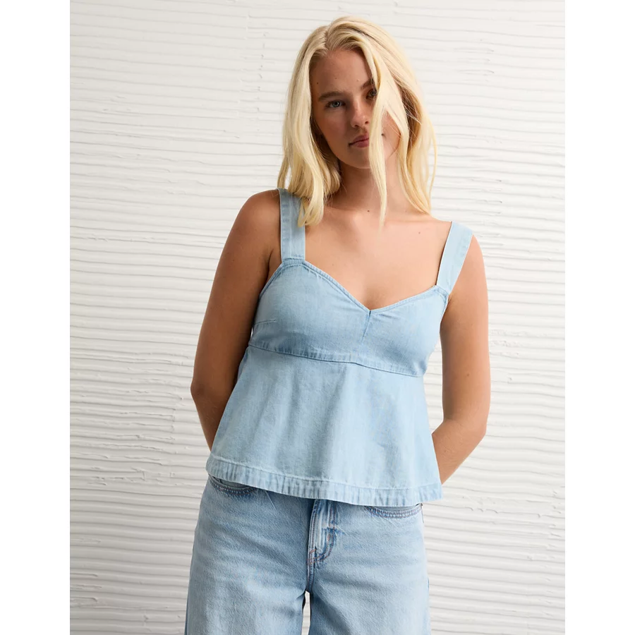 AE 11″ Dreamy Drape Stretch High-Waisted Jort – Light Tinted Wash