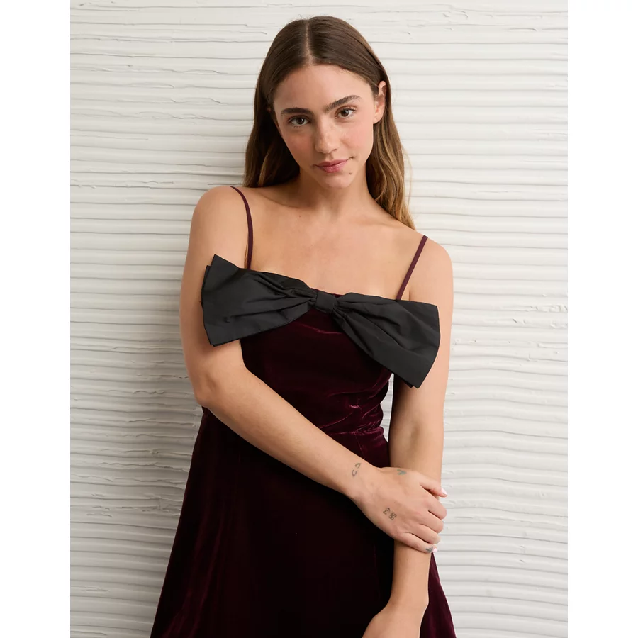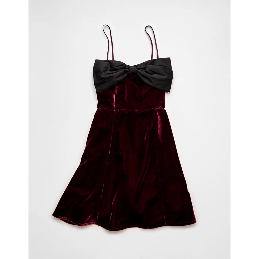 AE Bow Front Mini Dress – Burgundy