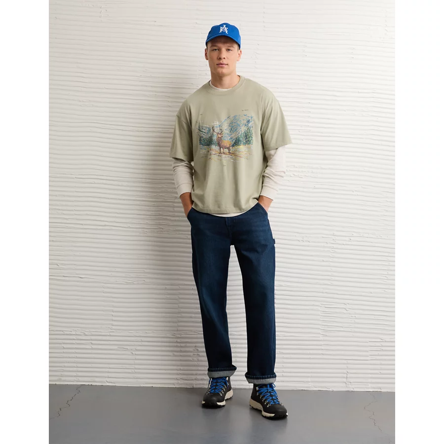 AE Boxy Destination Graphic T-Shirt – Olive