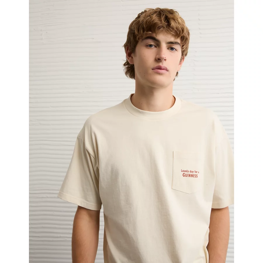AE Boxy Guinness Graphic Pocket T-Shirt – Bone Khaki
