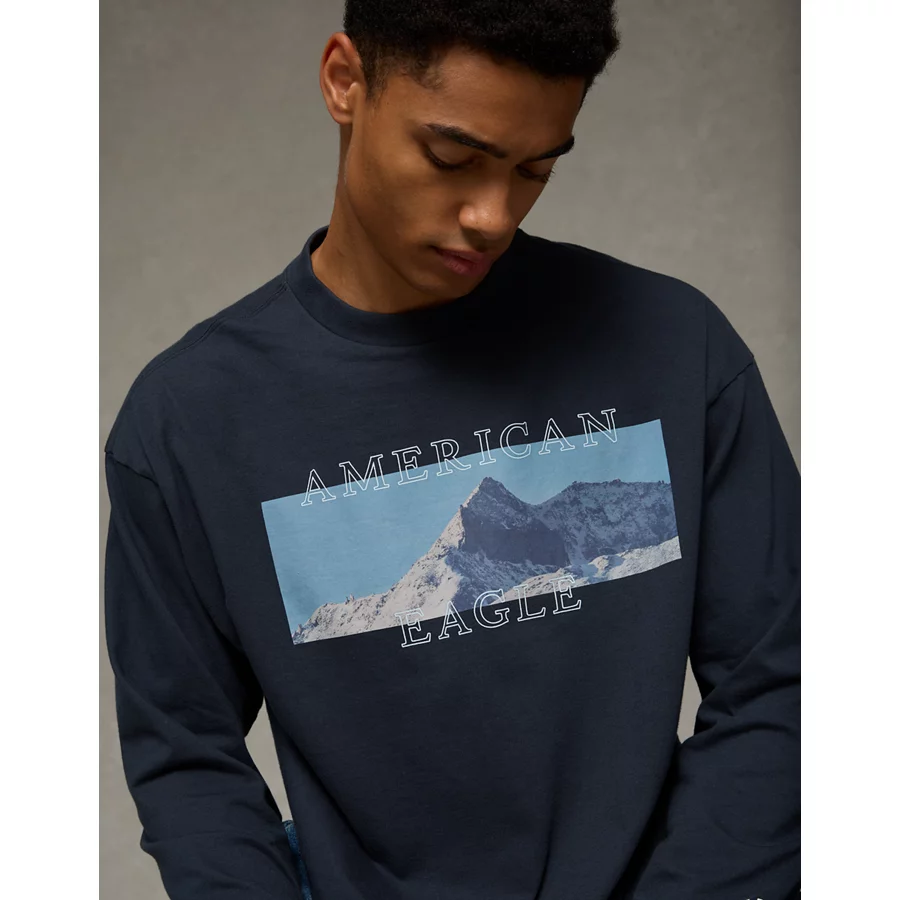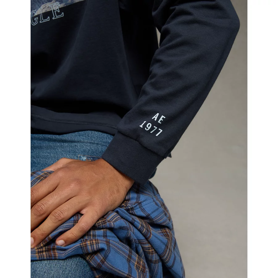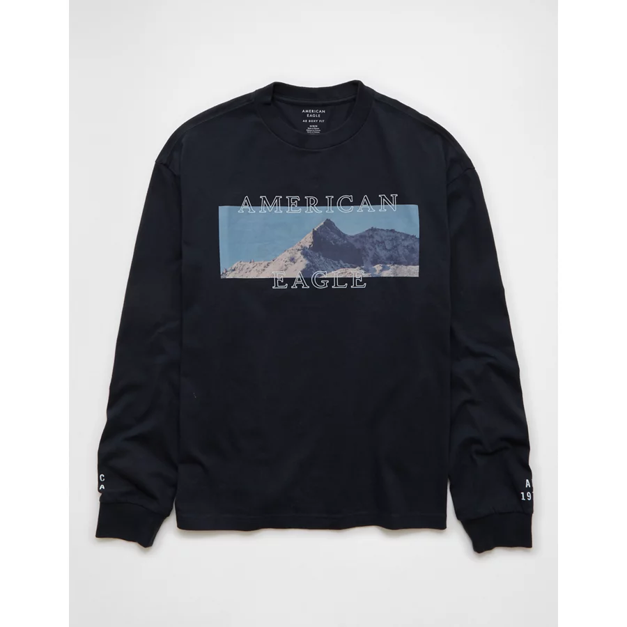 AE Boxy Long Sleeve Destination Graphic T-Shirt – Black