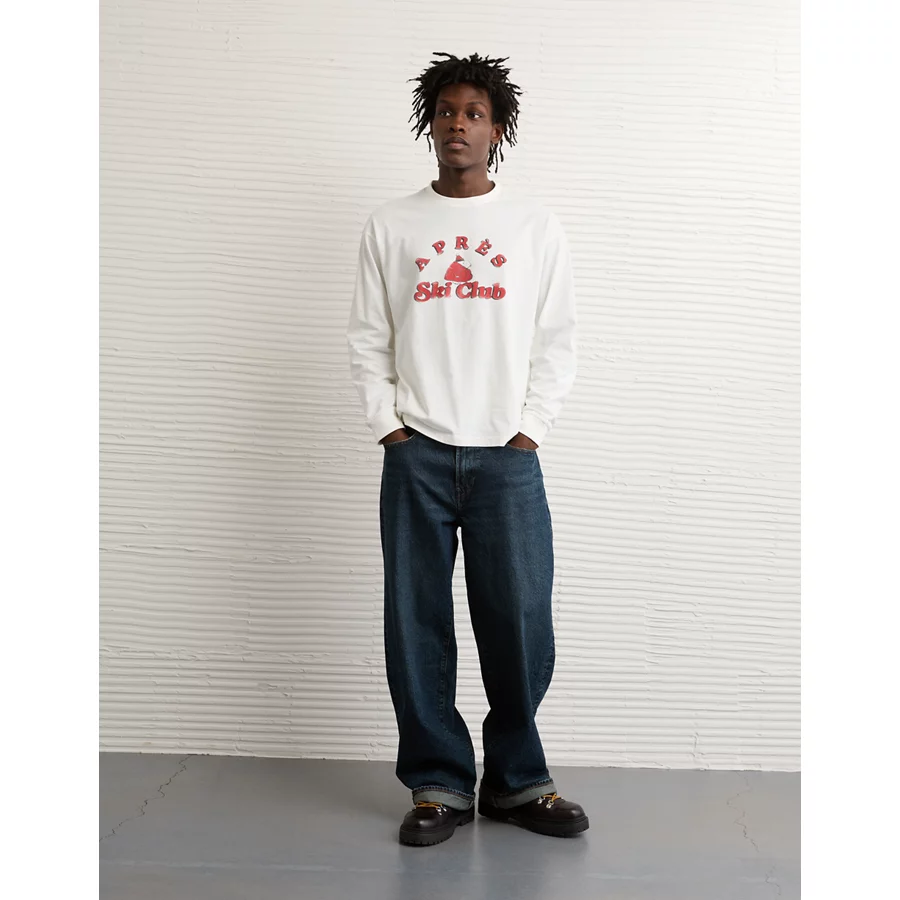 AE Boxy Long Sleeve Destination Graphic T-Shirt - White