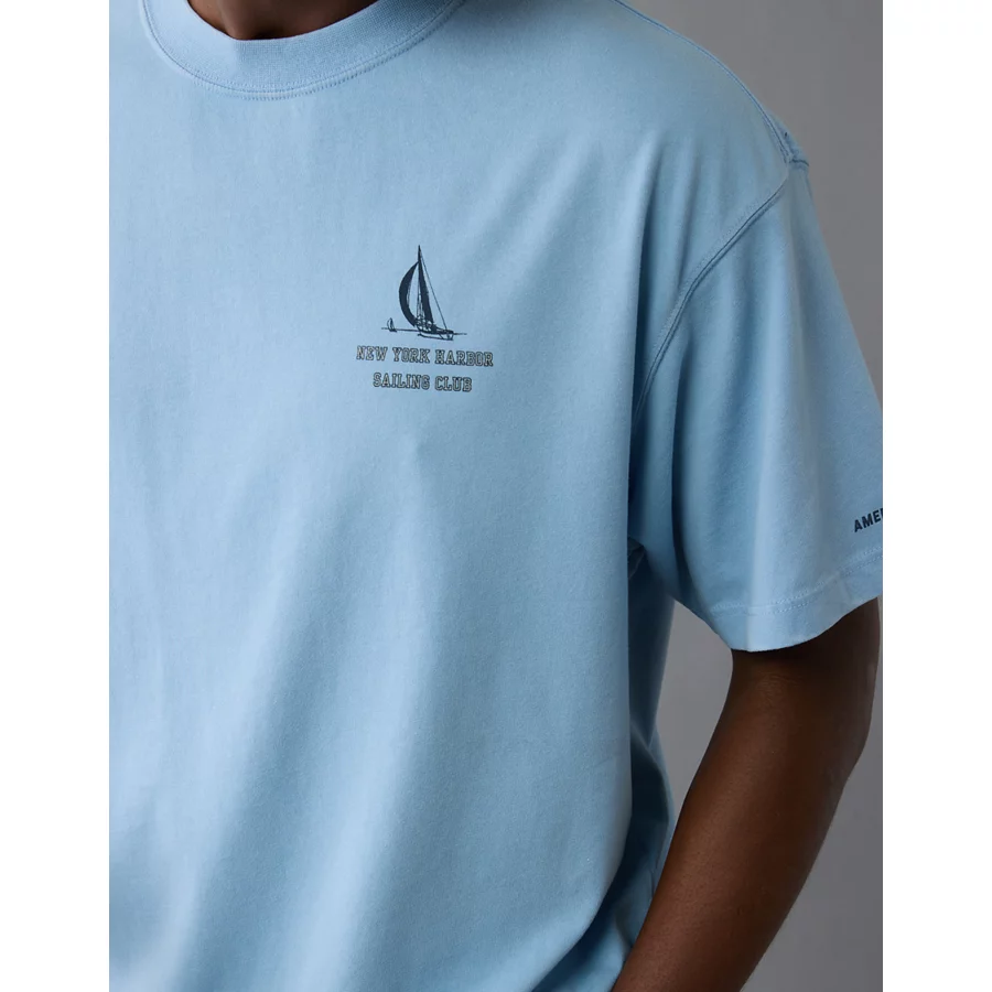 AE Boxy Nautical Graphic T-Shirt – Soft Blue