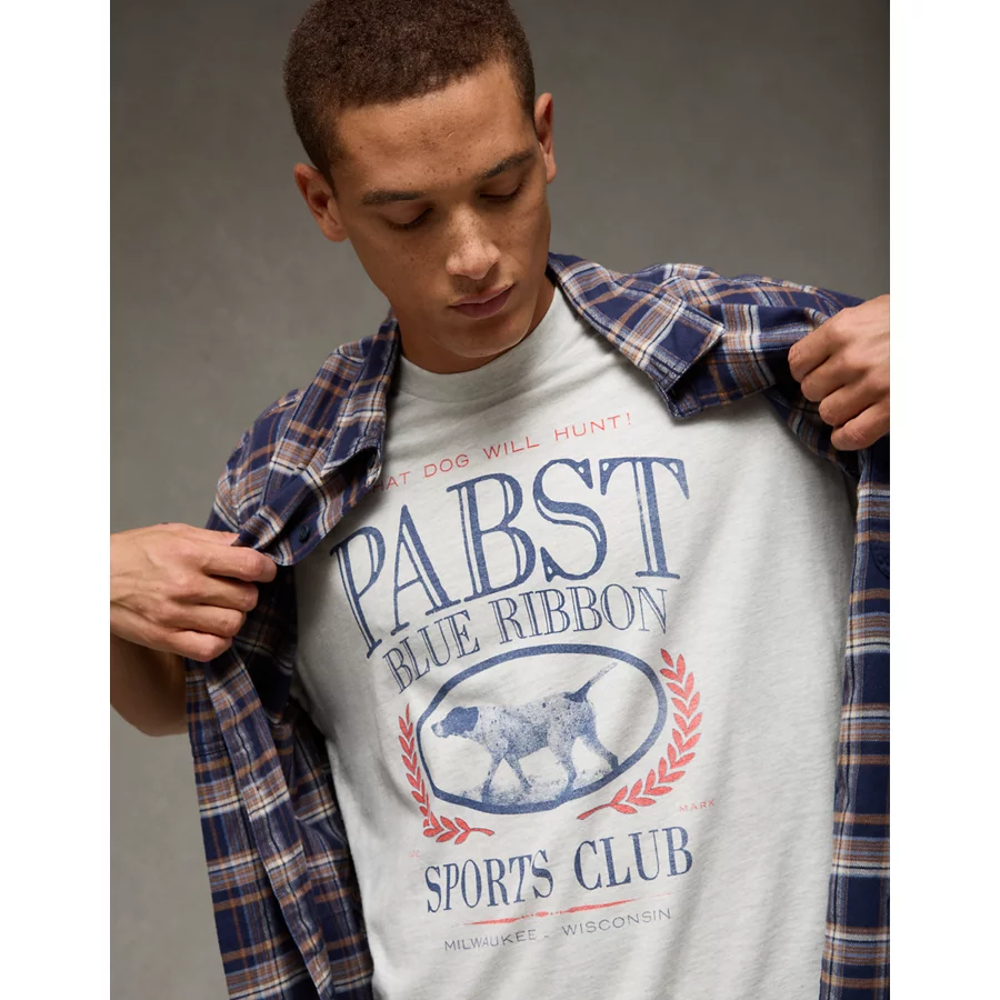 AE Boxy Pabst Blue Ribbon Graphic T-Shirt – Heather Gray