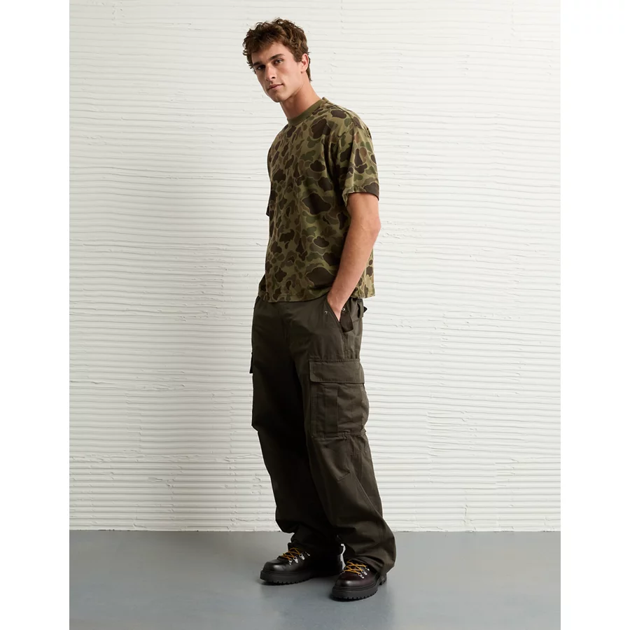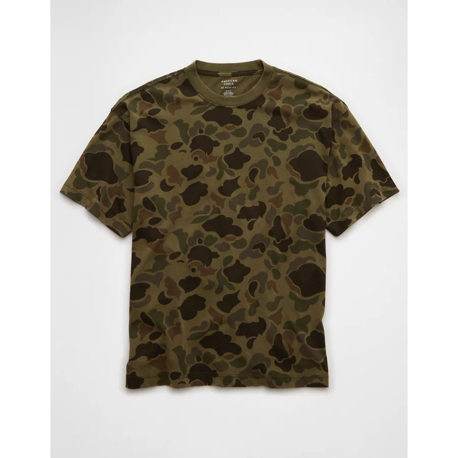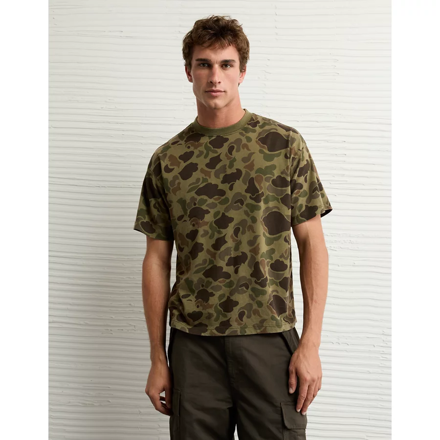 AE Boxy Sueded Camo Jersey T-Shirt – Olive