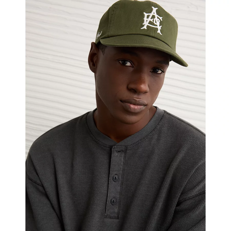 AE Boxy Washed Thermal Henley Shirt - Olive