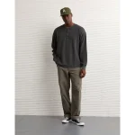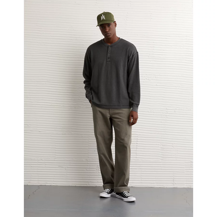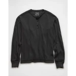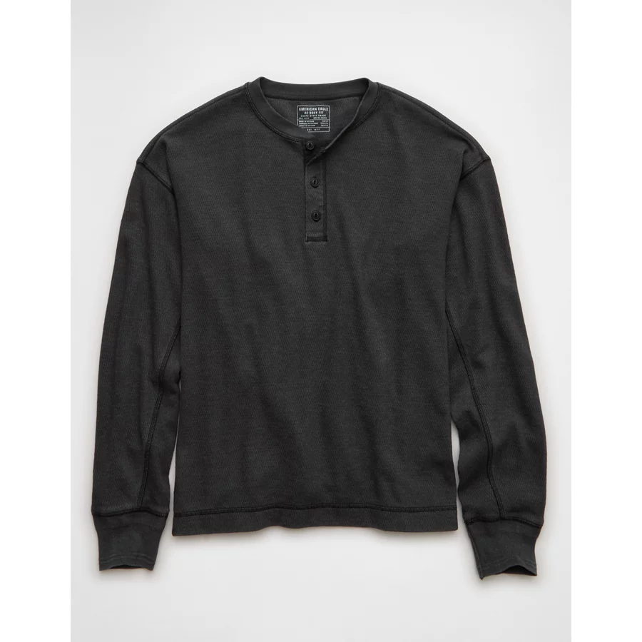 AE Boxy Washed Thermal Henley Shirt – Smoked Gray